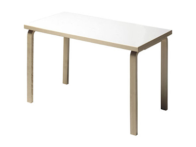 アルヴァ・アアルトが3年の間試行錯誤を重ねて生み出した、バーチ材をL字形に曲げた「アアルトレッグ」のテーブルシリーズ。こちらはデスクとしてもお使いいただけるコンパクトな幅120cm×奥行60cmタイプ、天板はホワイトラミネート加工仕上げです。