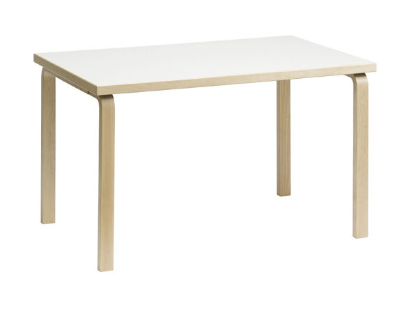 アルヴァ・アアルトが3年の間試行錯誤を重ねて生み出した、バーチ材をL字形に曲げた「アアルトレッグ」のテーブルシリーズ。