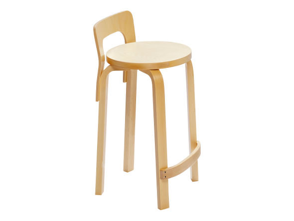 アルヴァ・アアルトが3年の間試行錯誤を重ねて生み出した、バーチ材をL字形に曲げた「アアルトレッグ」のチェア/スツールシリーズ。こちらはハイチェアタイプです。成型合板の低い背もたれが特徴的。座面は突板仕上げです。