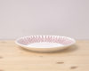 こちらは直径約18cmのプレートです。プレートの縁をレース刺繍で縁取ったような可憐なデザインです。ケーキやパンを乗せるのにちょうど良い大きさです。
