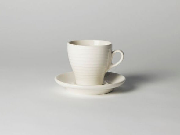 ストライプ柄の凹凸によって、クラシックなデザインに触知性と視感性がプラスされたカプチーノカップ&ソーサーです。