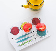 アルメダールスの人気柄の一つ、マリアンヌ・ウェストマンによるピクニックのカッティングボードです。 白樺を薄くスライスし、圧縮したMDF製で、耐衝撃性に優れ、丈夫な作りです。ボードは表面にラミネートコーティンが施されて水分・・・