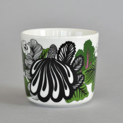 マイヤ・ロウエカリが、庭で育てている野菜たちからインスピレーションを得て描いた2017年の新作デザイン、カーリメッツァのハンドルなしコーヒーカップです。「キャベツの森」という意味で、生命力あふれる力強いタッチが印象的です・・・