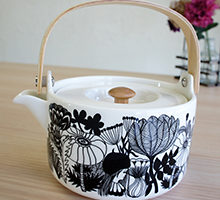 マイヤ・ロウエカリがデザインした人気柄、シイルトラプータルハ柄のティーポットです。モノトーンの線画に赤いドットがアクセントになっています。 容量は700ml。約3人分なので、普段使いに丁度良いサイズ感です。曲げ木のハンド・・・
