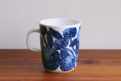 花や実など自然のモチーフを大胆に描いたveljekset柄のマグカップです。ヴェルイェクセトゥはマイヤ・ロウエカリが、フィンランド独立100周年を記念してデザインしました。シックなカラーリングと目を引くデザインがポイント・・・