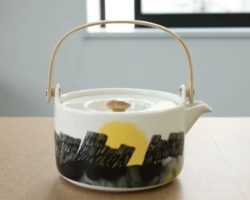 風になびく草の様子が思い浮かぶ、自然のワンシーンを切り取ったようなデザインのティーポットです。 草は1本1本味のあるラインで描かれ、下の方はわずかに色が混ざり合っています。天候をモチーフにしたテキスタイル、Saapaiv・・・