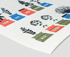 アストリッド・サンペがデザインしたアルメダールスの人気柄の一つ、ハーブのスポンジワイプです。色違いも展開しており、オリジナルのブルー系に加え、モノトーンやパステル調もあります。こちらはオレンジxグリーンの華やかなカラーリ・・・