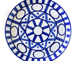 ダンスクの食器の中でも人気のアラベスクシリーズ。熟練の職人たちによってひと筆ひと筆描かれた、大胆でのびやかな筆遣いと白地を彩る鮮やかなブルーのラインが南国の海を思わせます。 こちらは直径24cmのプレートです。適度に深さ・・・