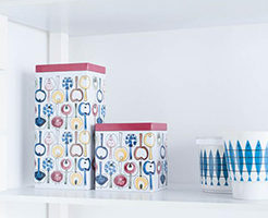 アルメダールスを代表するポモナ柄デザインのブリキ缶です。アルメダールスではショート缶を紅茶入れ、ロング缶は珈琲入れを想定していますが、もちろん何でも入れられます。蓋に突起が付いていて、ふたを閉めるとカチッと言う感じで閉ま・・・
