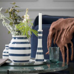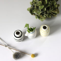 日本でも大変人気のあるケーラーのオマジオシリーズ。こちらはシリーズ最小の花瓶です。古典的な黒いストライプに、明るい日差しの黄色と繊細な淡い青が加わりました。3つの花瓶は、テーブルにまとまって置いたり、単独で使用しても素敵・・・