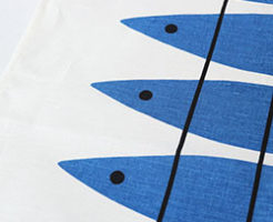 アルメダールスの人気柄であるフィッシュ柄のティータオルです。 整列したニシンがシンプルなデザインです。 ブランド: Almedahls – アルメダールス / スウェーデン デザイン: Marianne Ni・・・